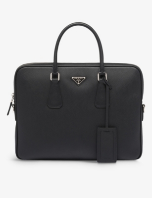 Prada has been crafting leather bags since 1913, so the brand is well-equipped to kit you out with all your essential carriers. This iteration is intended as a work bag or briefcase, featuring the brand's signature textured Saffiano leather and durable top handles. Complete with an inside zipped pocket and several smaller pockets, it's the ideal thing to take with you on your daily commute (it even has space for an iPad and two smartphones).| Prada Saffiano-leather work bag100% Saffiano leatherZip fasteningLeather handles, adjustable leather shoulder strap, enamelled metal triangle logo on the front, interior with zipper pocket, patch pocket and small patch pocket, Prada logo nylon liningHeight 28cm, width 36cm, depth 4cmSpecialist leather cleanMade in ItalyPlease note, we are unable to accept in-store returns on Prada orders