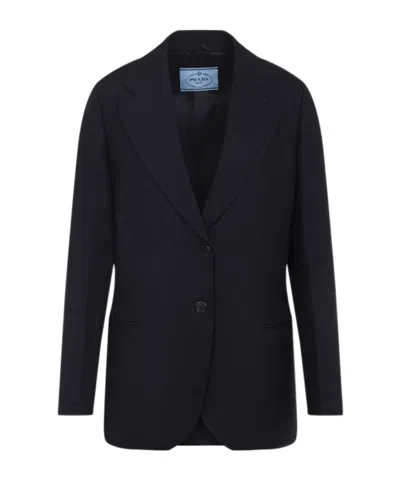 Product details This single-breasted chevron jacket explores the balance between rigor and texture The notch lapel straight silhouette and fabric logo define a garment designed to express understated sophistication Product code P545P_16OX_F0008_S_OOO Straight fit Lined Notch lapel Front button closure Straight three-button sleeves Welt pockets Fabric triangle logo Imported The model is 180 cm tall and wears a size 38 Height 74cm Main material 100 virgin wool