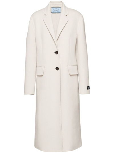 PRADA Wool Single-breasted Coat In Chalk White