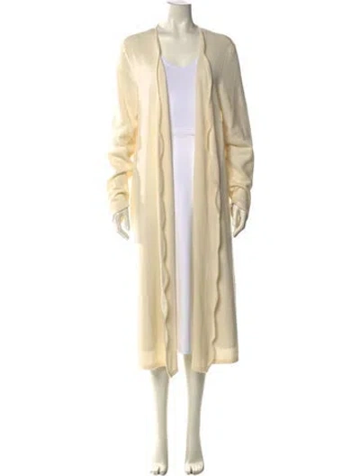 Pratesi Cardigan Neutrals Scalloped Accent Long Sleeve with Open Front Size not listed, estimated from measurements. Fit: Knitwear by Pratesi typically fit true to size. | Pratesi Open Front Sweater in Neutrals, Women's L