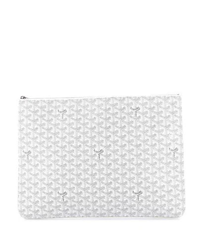 Pre-owned Goyard Gm Senat Zip Pouch Coated Canvas In White