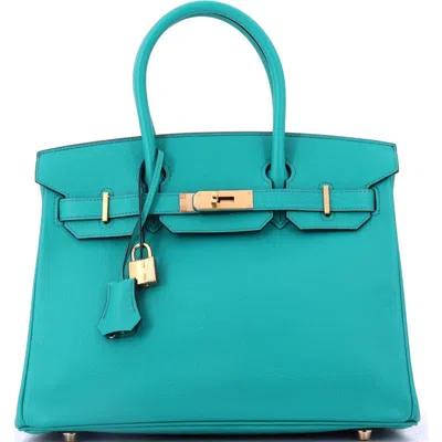 PRE-OWNED HERMES Hermes Birkin Handbag Blue Epsom With Gold Hardware 30