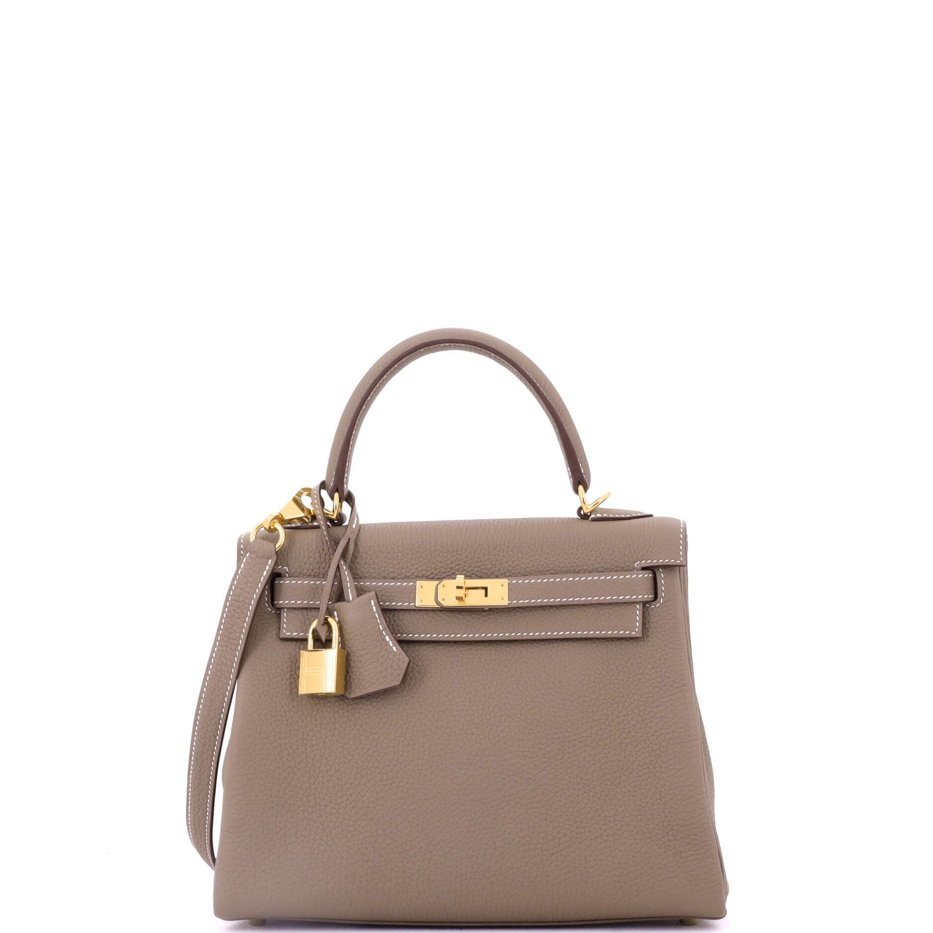 Hermes Kelly Handbag Grey Togo With Gold Hardware 25 In Brown