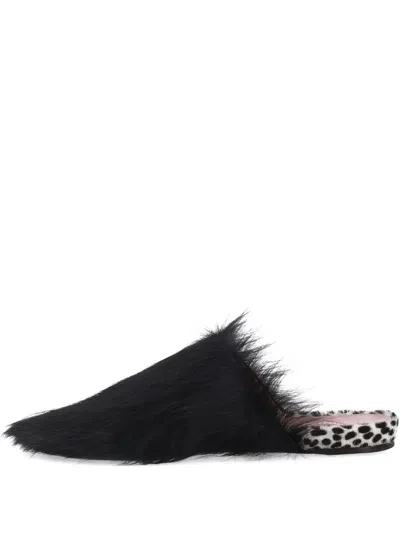 black calf hair open toe flat sole polka-dot pattern