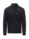 Black Premiata sweater with long-sleeved polo design. Made of lightweight fabric with classic collar, three-button closure.