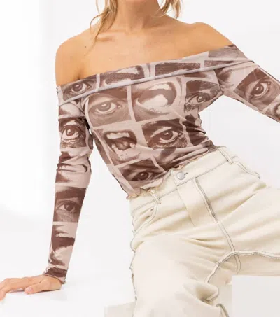 PRETTY GARBAGE Two-faced Mesh Top In Brown