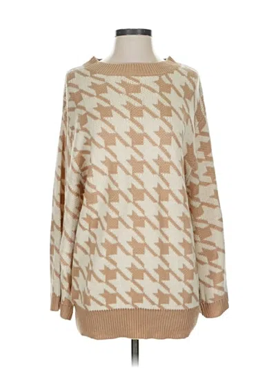 Princess Polly Pullover Sweater, Size: Small. Item Details: Tan, Houndstooth Pattern, Square Neckline, Long Sleeve, Women's Tops, 100% Acrylic
