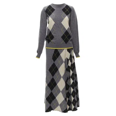 PRINGLE OF SCOTLAND Wool Argyle Sweater Asymmetric Midi Skirt In Multi