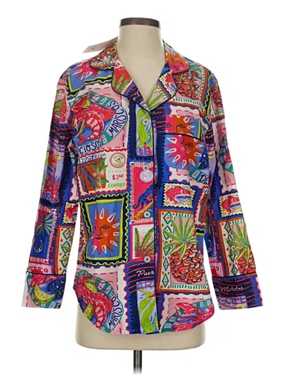 Printfresh Long Sleeve Button Down Shirt, Size: X-Small. Item Details: Purple, Square Neckline, Long Sleeves, Pattern, Women's Tops, 100% Cotton