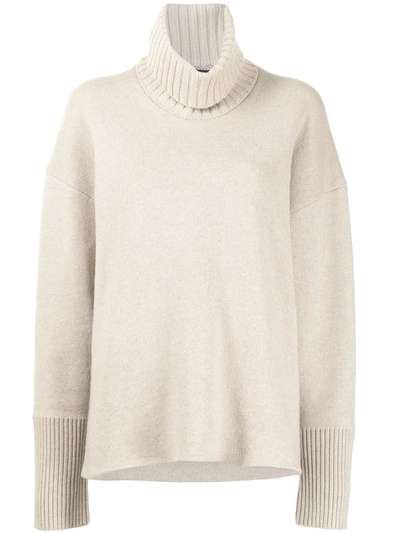 Oatmeal beige cashmere oversized turtleneck double-faced jumper from PROENZA SCHOULER featuring roll neck, drop shoulder, long sleeves, ribbed cuffs and straight hem.