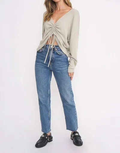 PROJECT SOCIAL T As If Ruched Front Slouchy Long Sleeve In Sueded Sage In Gray