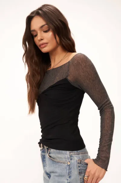 PROJECT SOCIAL T Plot Twist Rib Mixed Long Sleeve Top In Black
