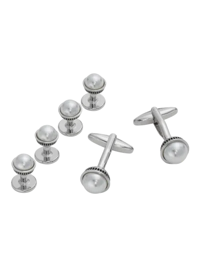 PRONTO UOMO Round Pearl Cufflinks & Studs Set