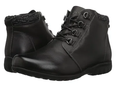Propet Delaney - Women's Boots : Black Leather : The Delaney dares to add a sporty style to your look so you can start your weekend on the right foot! ; Scotchgard treated suede uppers with a round toe. ; Ankle-high boot with a padded tweed fabric collar. ; Traditional lace-up closure with D-rings. ; Medial side zipper. ; Soft Nylex linings. ; Cushioned EVA footbed for all-day comfort. ; Durable rubber outsole with traction control. ; Imported. Measurements: ; Weight: 15 oz ; Product measurements were taken using size 9, width M (B). Please note that measurements may vary by size. | Propet Delaney Women's Boots Black Leather : 10 N (AA), Suede