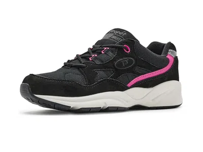 Propet Stability Fusion - Women's Walking Shoes : Black/Pink : This casual walking shoe features a comfy suede and mesh design with a wide base for improved stability. A roomy toe box provides toes space to spread out so you can stay surefooted in every step. ; Mesh and suede upper combined to offer a soft, casual style. ; Nylon lining. ; OrthoLite X25 open cell foam insoles move moisture from foot for a cooler, healthier footbed. ; Lace-up closure in a round toe silhouette. ; Water repellent. ; Rubber outsole. ; Imported. | Propet Stability Fusion Women's Walking Shoes Black/Pink : 9 X (2E), Suede/Textile