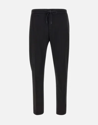 Men's cotton blend trousers from Pt Torino in black, featuring ultra-comfortable stretch fabric from the Active Collection. Designed with a regular elasticated waist and a matching drawstring, these trousers include side welt pockets and back pockets with flaps. They have a zip and button closure and offer a slim fit.. Gender: Men. Material: 48% COTTON, 46% POLYAMIDE, 6% ELASTANE;. Color: Black. Made in: RO. Product ID: COASMGZ40KLTIT190990. *Import tax/duty will be calculated at checkout (If applicable)