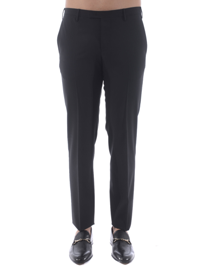 PT01 trousers in black stretch techno wool. America pockets. Back welt pockets. Overlapping zip and hook closure. Skinny fit.Size in photo 4854% wool, 45% polyester, 1% elastane