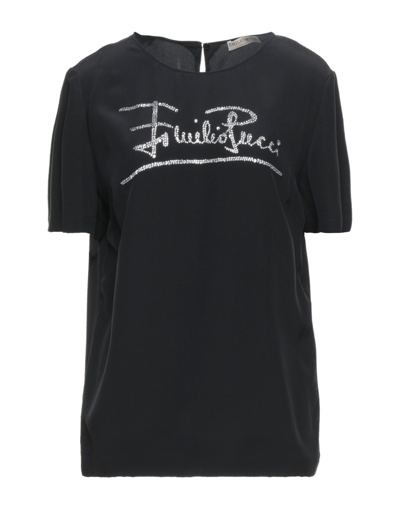 EMILIO PUCCI Blouses. crepe, brand logo, rhinestones, solid colour with appliqués, round collar, short sleeves, 1 button, no pockets. 100% Silk