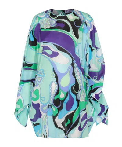 Caftan made of silk Crewneck Long sleeves Bow cuffs Orchid print Loose fit Green, Multi Made in Italy Composition: 100% silk. La modella indossa una taglia unica.Misure del modello:Altezza: 175 cmPetto: 86,5 cmVita: 65 cmFianchi: 92 cmSpalla: 40 cm.