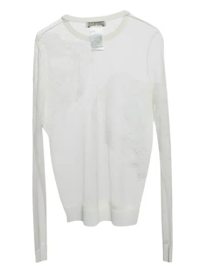 Pre-owned Embroidered-tulle Top In White