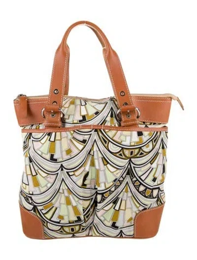 Emilio Pucci Backpack Silver Leather Printed Silver-Tone Hardware Jacquard Lining Zip Closure at Top Unfortunately, due to restrictions, this item may not be eligible for shipping in all areas. | Emilio Pucci Leather Backpack in Silver