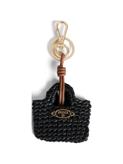 A small but striking accessory, designed to add a touch of Pucci to any bag. This charm stands out for its soft texture and minimalist look, perfect for wearing as a decorative detail or as a personal signature on the handle. The black color enhances its artisanal soul and makes it easy to match, with an ironic and contemporary attitude. black 100% viscose Rafia Pontova made in Italy