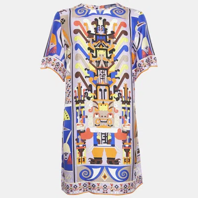 Pre-owned Multicolor Printed Silk Shift Mini Dress S