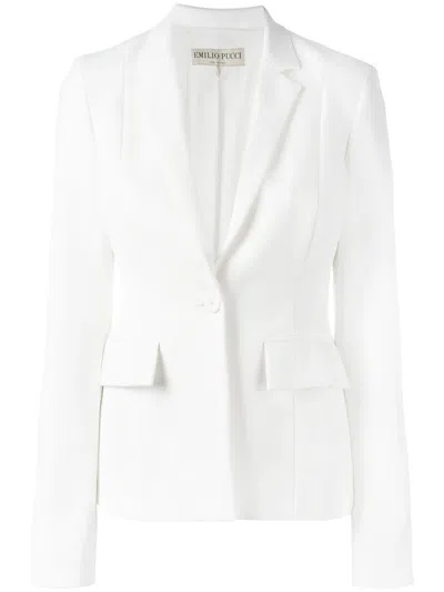 White cotton, silk and linen blend one button blazer from Emilio Pucci.