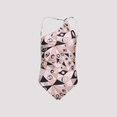PUCCI One Shoulder Tech Swimsuit Geometric Pattern In Nude