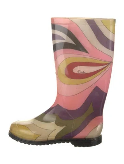 Emilio Pucci Rubber Mid-Calf Rain Boots Neutrals Printed Round-Toes | Emilio Pucci Rubber Printed Rain Boots in Neutrals, Women's 9.5