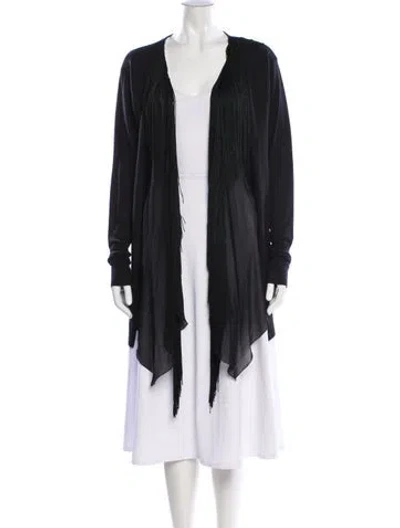 Emilio Pucci Silk Cardigan Black Fringe Trim Accent Long Sleeve with Open Front Fit: Knitwear by Emilio Pucci typically fit true to size. | Emilio Pucci Silk Open Front Sweater in Black, Women's XL