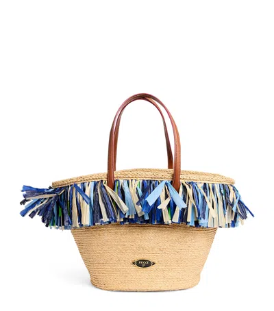 Pucci's affinity for prints and textures finds the perfect outlet in the Puccing woven tote bag, a capacious silhouette designed for beach-side trips. Leather handles match the detachable pouch that can be used to store the essentials, while playful tassels line the opening - look closely and you'll spot elements of the brand's signature prints among the kinetic trims.