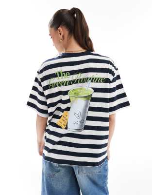 PULL & BEAR Matcha Graphic Striped Oversized Tee In Multi