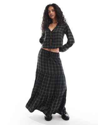 PULL & BEAR Tiered Maxi Skirt In Green Check
