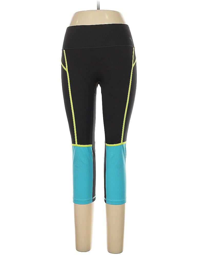 Puma Active Pants, Size: Large. Item Details: Blue, Color Block Pattern, Skinny Leg, Cropped, Women's Activewear, Polyester/Elastane