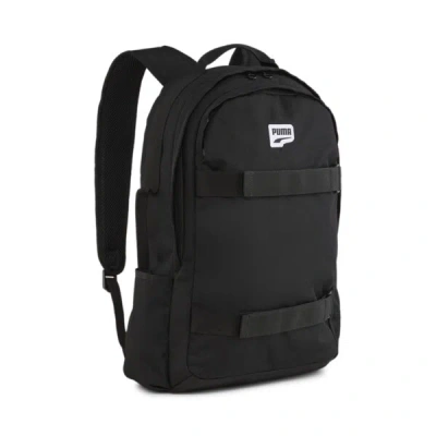 Celebrate throwback 90s culture in this DOWNTOWN backpack. The backpack has a two-way zip opening into main compartment and a zip opening into large front compartment. On the outside, there's webbing construction with Velcro tape to hold a skateboard on the front, and on the inside, there's a lined fabric laptop compartment. | PUMA Downtown Backpack in Black