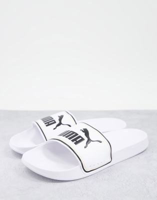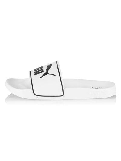 A bright logo strap tops these classic faux leather pool slides. Faux leather upper Slip-on style Open toe EVA foam sole Imported. Men's Shoes - Contemporary Lifestyle > Puma > Saks Fifth Avenue > Barneys. Puma. Color: Puma White Puma Black. Size: 8.