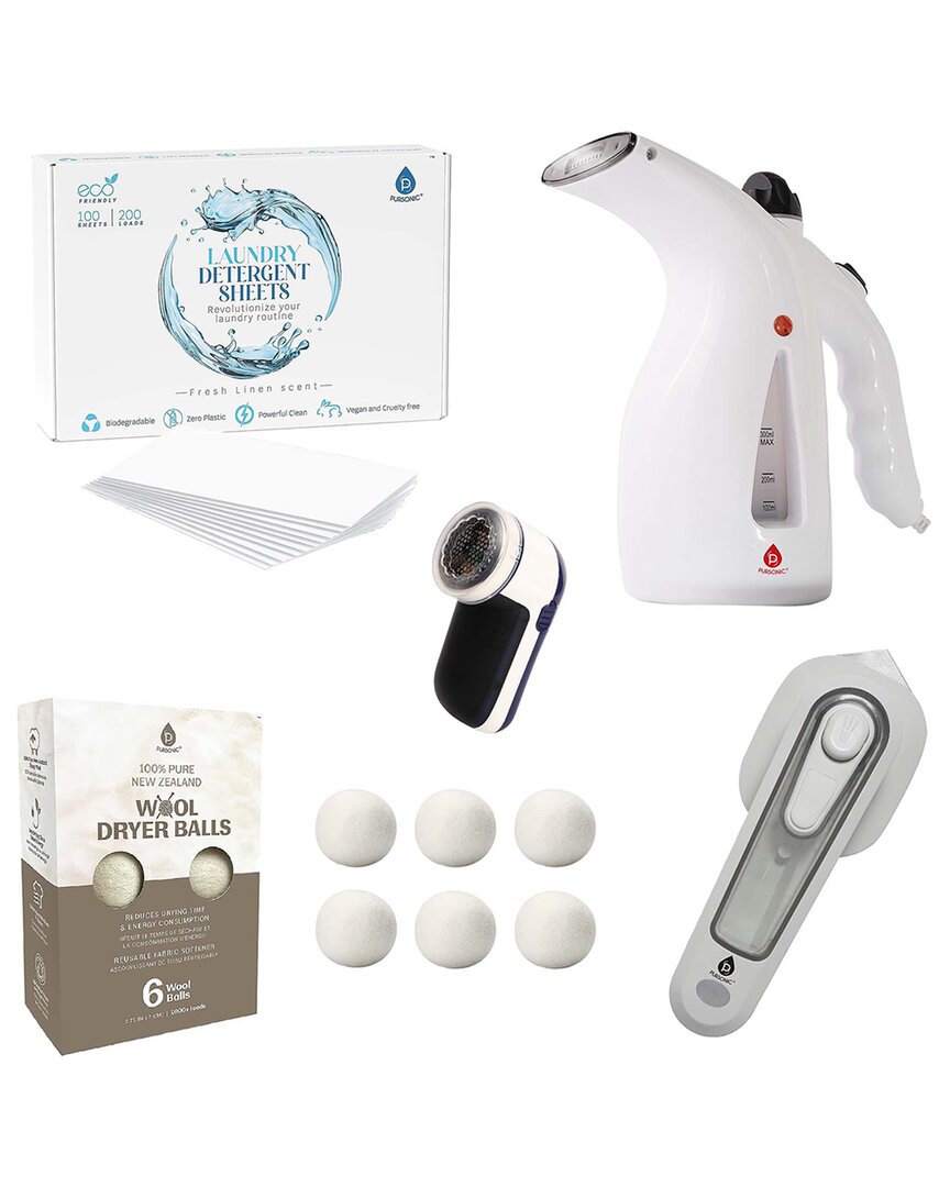 Color/Finish: Red Design Details: Upgrade Your Laundry Routine With The Pursonic Ultimate Laundry Care Bundle This All-In-One Set Is Designed To Keep Your Clothes Fresh, Wrinkle-Free, And Looking Brand New, Whether You're At Home Or On The Go. Featuring The Pursonic 300Ml Handheld Fabric Steamer, Mini Portable Electric Iron, Fabric Shaver & Lint Remover, Eco-Friendly Laundry Detergent Sheets, And 100% Pure New Zealand Wool Dryer Balls, This Bundle Is The Perfect Solution For Effortless Fabric Care. What's Included. Pursonic 300Ml Handheld Fabric Steamer – Quick & Powerful Wrinkle Removal. Say Goodbye To Stubborn Wrinkles With This Fast-Heating, Travel-Friendly Garment Steamer 2-Minute Fast Heat-Up – Ready To Go In No Time 300Ml Water Tank – Provides 7-10 Minutes Of Continuous Steam. Gentle On All Fabrics – Perfect For Suits, Bedding, Curtains, Carpets, And More. Automatic Shut-Off For Safety – Prevents Overheating. Compact & Lightweight – Ideal For Home And Travel Use. Pursonic Mini Portable Electric Iron – Travel-Ready Wrinkle Solution. A Must-Have For Business Trips, Vacations, And Last-Minute Touch-Ups Quick Heating & Steady Temperature – Removes Wrinkles Fast. Works On All Fabrics – Perfect For Cotton, Silk, Synthetics, And More. Dual Voltage Compatibility (110V/220V) – Use It Anywhere In The World. Ergonomic & Comfortable Design – Easy To Handle, Even For Extended Ironing Sessions. Ultra-Compact & Lightweight – Fits Easily In Your Luggage. Pursonic Fabric Shaver & Lint Remover – Restore Your Clothes & Upholstery. Refresh Your Sweaters, Furniture, And Blankets With This Powerful Lint Remover Removes Lint, Fuzz, And Pilling – Instantly Revives Fabrics. Battery Operated (2 Aa, Not Included) – Use It Anywhere. Gentle Yet Effective – Preserves Fabric Quality While Removing Imperfections. Bonus Cleaning Brush Included – Keeps Your Device In Top Condition. Pursonic Natural Laundry Detergent Sheets – Eco-Friendly & Skin-Safe. Ditch Heavy Detergent Bottles And Switch To Ultra-Convenient, Biodegradable Laundry Sheets 100-Pack (Up To 200 Loads) – Powerful Yet Gentle On Clothes. Fresh Linen Scent – Leaves Laundry Smelling Fresh And Clean. Hypoallergenic & Non-Toxic – Safe For Sensitive Skin (Great For Kids & Babies). Plastic-Free & Biodegradable – Reduce Waste And Protect The Planet. Dissolves Completely In Water – No Messy Residue, Just Pure Cleaning Power Perfect For Travel – Compact And Lightweight, Great For Suitcases And Gym Bags. Pursonic 100% Pure New Zealand Wool Dryer Balls – Natural Fabric Softener. Replace Chemical-Laden Dryer Sheets With Reusable, All-Natural Wool Dryer Balls Made From 100% Pure New Zealand Wool – No Synthetic Fillers Or Chemicals. Reduces Drying Time & Static – Cuts Drying Time By Up To 25% While Softening Fabrics. Long-Lasting & Reusable – Works For 1,000+ Loads Hypoallergenic & Fragrance-Free – Perfect For Sensitive Skin & Babies. Eco-Friendly & Sustainable – A Natural Alternative To Dryer Sheets. Everything You Need For Fresh, Wrinkle-Free Clothes – Steam, Iron, Shave, Wash, And Dry Effortlessly. Perfect For Home & Travel – Lightweight, Portable, And Designed For On-The-Go Convenience. Eco-Friendly & Safe – Gentle On Your Fabrics And The Environment. Saves Time & Money – Durable, Reusable, And Cost-Effective Fabric Care Solutions. Upgrade Your Laundry Game Today – Order The Pursonic Ultimate Laundry Care Bundle Now Measures 8In Long X 8In Wide Materials: Plastic Wipe Clean Imported Contents Of Set: One Travel Steamer One Mini Iron One Fabric Shaver 100 Natural Laundry Detergent Sheets Six Wool Dryer Balls