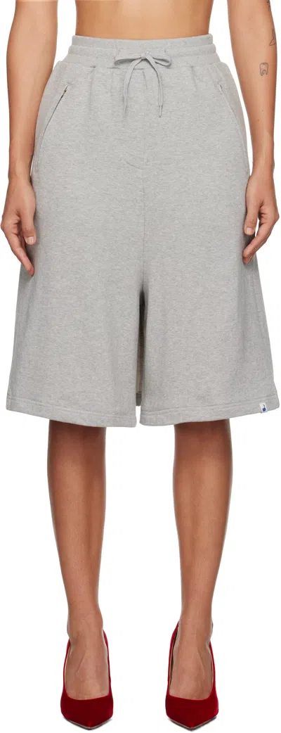 French terry skort. · Drawstring at elasticized rib-knit waistband · Two-pocket styling · Mock-fly · Logo patch at cuff · Dropped inseam Supplier color: Gray
