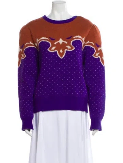 Pushbutton Wool Sweater Purple Printed Long Sleeve with Scoop Neck Fit: Knitwear by Pushbutton typically fit true to size. | Pushbutton Wool Printed Sweater in Purple, Women's S