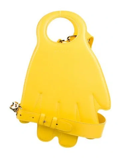 Pyer Moss Top Handle Bag Yellow Leather Gold-Tone Hardware Flat Handles & Single Shoulder Strap Canvas Lining & Single Interior Pocket Zip Closure at Top Includes Dust Bag | Pyer Moss Wave Handle Bag in Yellow