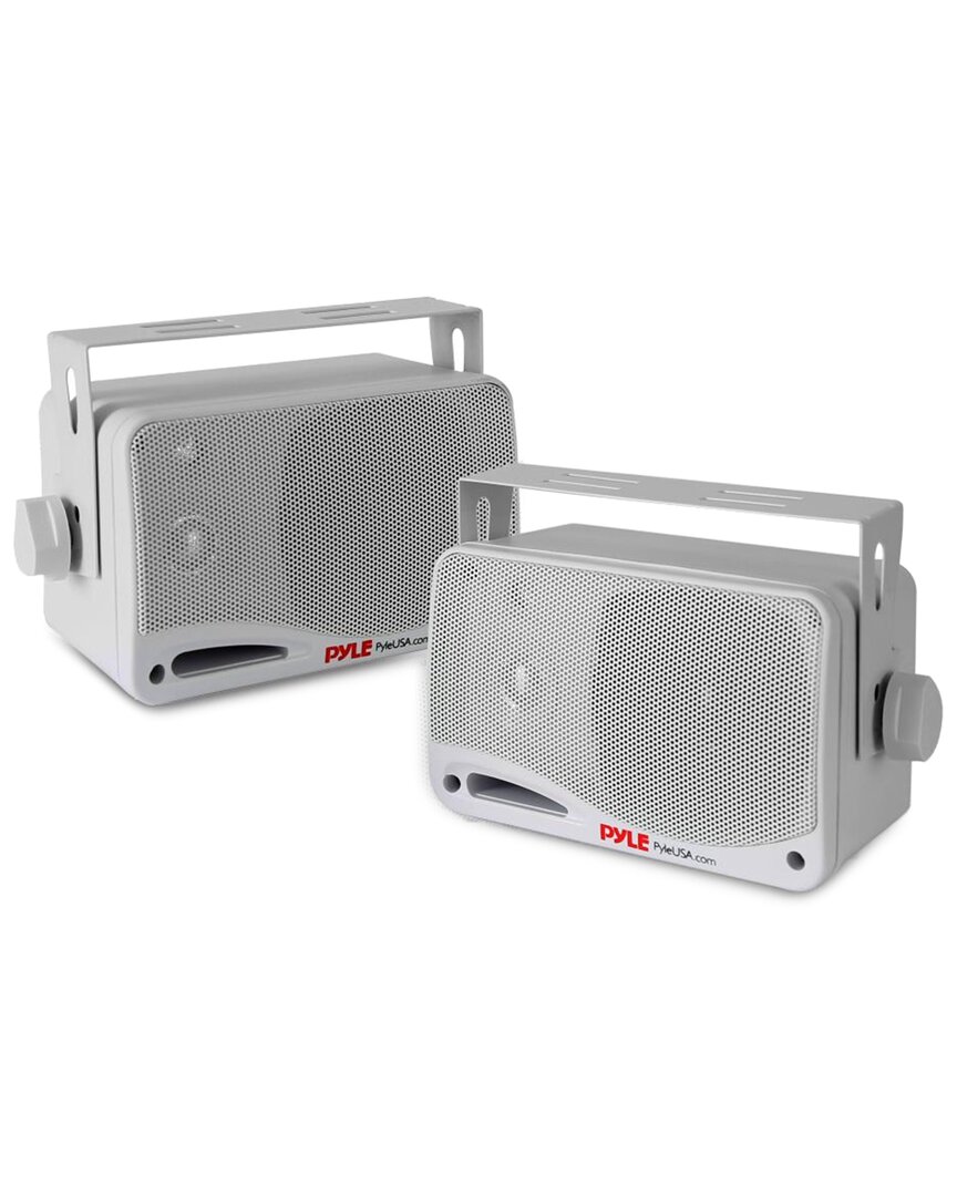 Color/Pattern: White Design Details: Features: Active + Passive Dual Speaker System Bluetooth Wireless Music Streaming Universal Indoor/Outdoor Mountable Aux (3.5Mm) Input Jack Connect & Stream Audio From External Devices 3-Way Full Range Stereo Sound Reproduction Bass Reflex Vent For Added Bass Response Built-In Capacitor Crossover Network Lightweight & Compact Size Removable Rustproof Mesh Grills Quick Connect/Disconnect Speaker Terminals Used For Home, Garage, Yard, Deck, Porch, Patio What's In The Box: (1) Active Speaker (1) Passive Speaker Speaker Wire, 11.5 Ft. Wall Power Adapter Removable Mounting Brackets Bluetooth Connectivity: Built-In Bluetooth Wireless Streaming Receiver Simple & Hassle-Free Connection Works With All Of Todays Latest Devices (Smartphone, Tablet, Laptop, Computer, Etc.) Bluetooth Version: 4.0 Bluetooth Network Name: Pyle Bluetooth Network Password: 0000 (4 Zeroes) Wireless Range: 30+ Ft. Technical Specs: Power: 200 Watt Peak (100 Watt Rms) Subwoofers: 3.5 Aluminum Injection Cones Midranges: 1.75 Wide Dispersion Cones Tweeters: 1.0 Superior Domes Construction Material: Engineered Abs Frequency Response: 70-21Khz Magnet Structure: 24 Oz. Impedance: 4 Ohm Power Supply: 120V (Dc 12V Power Adapter) Dimensions (L X W X H): 5.25 X 3.75 X 3.75 -Each Single Speaker Weight: 1.76 Lbs. -Each Measures (L X W X H): 5.25 X 3.75 X 3.75 -Each Engineered Abs 120V (Dc 12V Power Adapter) Imported Contents Of Set: What's In The Box: (1) Active Speaker (1) Passive Speaker Speaker Wire, 11.5 Ft. Wall Power Adapter Removable Mounting Brackets