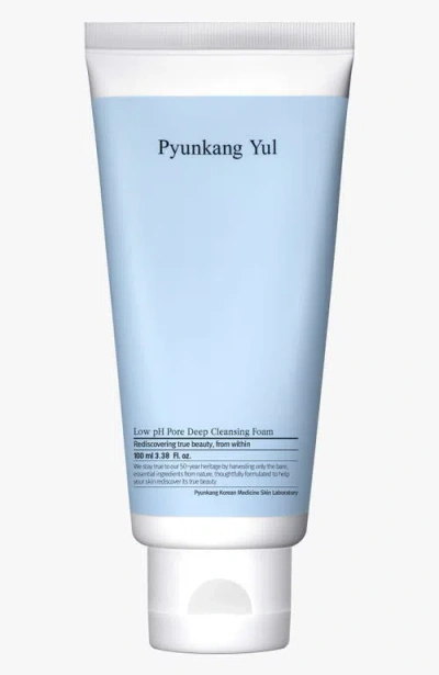 Mild Formula with a Rich Lather Pyunkang Yul's Low pH Pore Deep Cleansing Foam cleanses deeply yet gently to remove dirt, impurities and makeup. Using natural surfactants that don't cause irritation or disturb the skin's delicate acid mantle, this cleanser helps keep skin balanced and soft thanks to how well it mimics the skin's own pH levels. Star ingredient, diatomite, is a natural component of seabed vegetable plankton and contains over 66 kinds of healthy natural minerals. Thorough cleansing without disturbing the skin's delicate acid mantle. Refreshing, subtle scent while cleansing. Rinses clean without tightness or dryness. Great for - Skin Types: All skin types including Sensitive - Skin Concerns: Sensitive, Easily irritated, Redness, Weak or damaged skin barrier What to Expect - Scents: Refreshing herbs - Texture: Rich, whipped cream - Makes Skin Look & Feel: Soft and balanced 100 ml / 3.4 fl oz