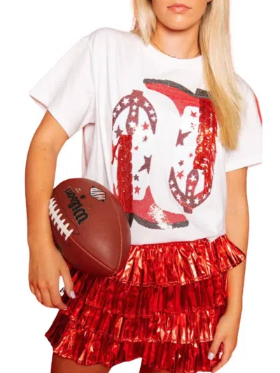 QUEEN OF SPARKLES Fringe Boot Tee Top In Red & White In Multi