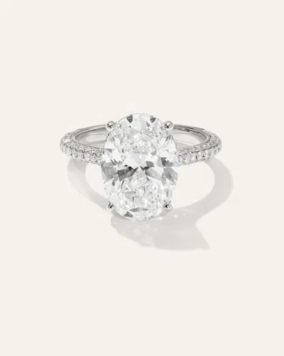 This ring is both luxurious and meaningful, featuring a stunning 5 carat oval lab grown diamond set in an elegant multi-row pave cathedral design. This sophisticated piece combines timeless beauty with refined details that elevate its charm to new heights. The hidden halo adds a touch of surprise brilliance, amplifying the sparkle of the center 5 carat stone while maintaining a graceful aesthetic. | Quince | Women's Lab Grown Diamond Oval Pave Cathedral Engagement Ring in White Gold, Size 10.5