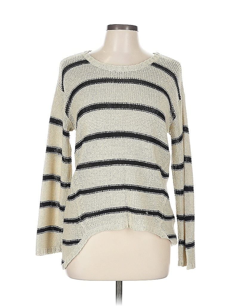 Quinn Pullover Sweater, Size: Large. Item Details: Ivory, Stripes Pattern, Scoop Neck, Long Sleeve, Women's Tops