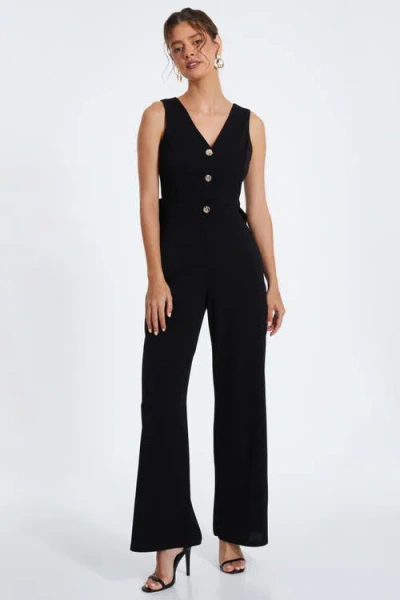 QUIZ Button Front Scuba Crepe Jumpsuit With Open Back In Black