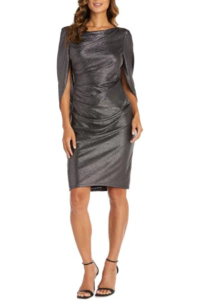 R & M RICHARDS Metallic Built-in Shawl Pleated Sheath Dress In Grey In Multi