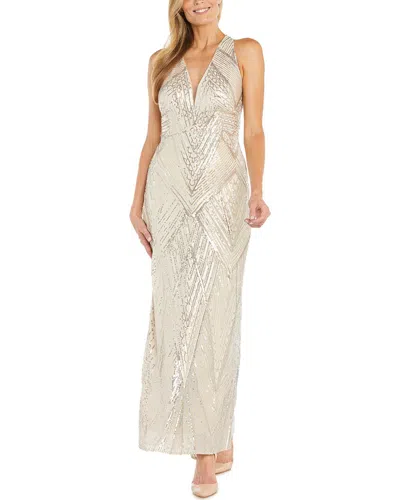 R & M RICHARDS Rm Richards Sequin Geometric Gown In Neutral