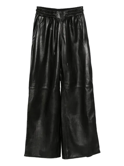 black leather construction side zip detailing elasticated waistband snap button fastenings. Colour. : Black. Composition. : Lining Composition Polyester: 100.0%, Outer Composition Sheepskin: 100.0%. Country Of Manufacture. : India. MPN. : R13WR418R426ABLACK. .